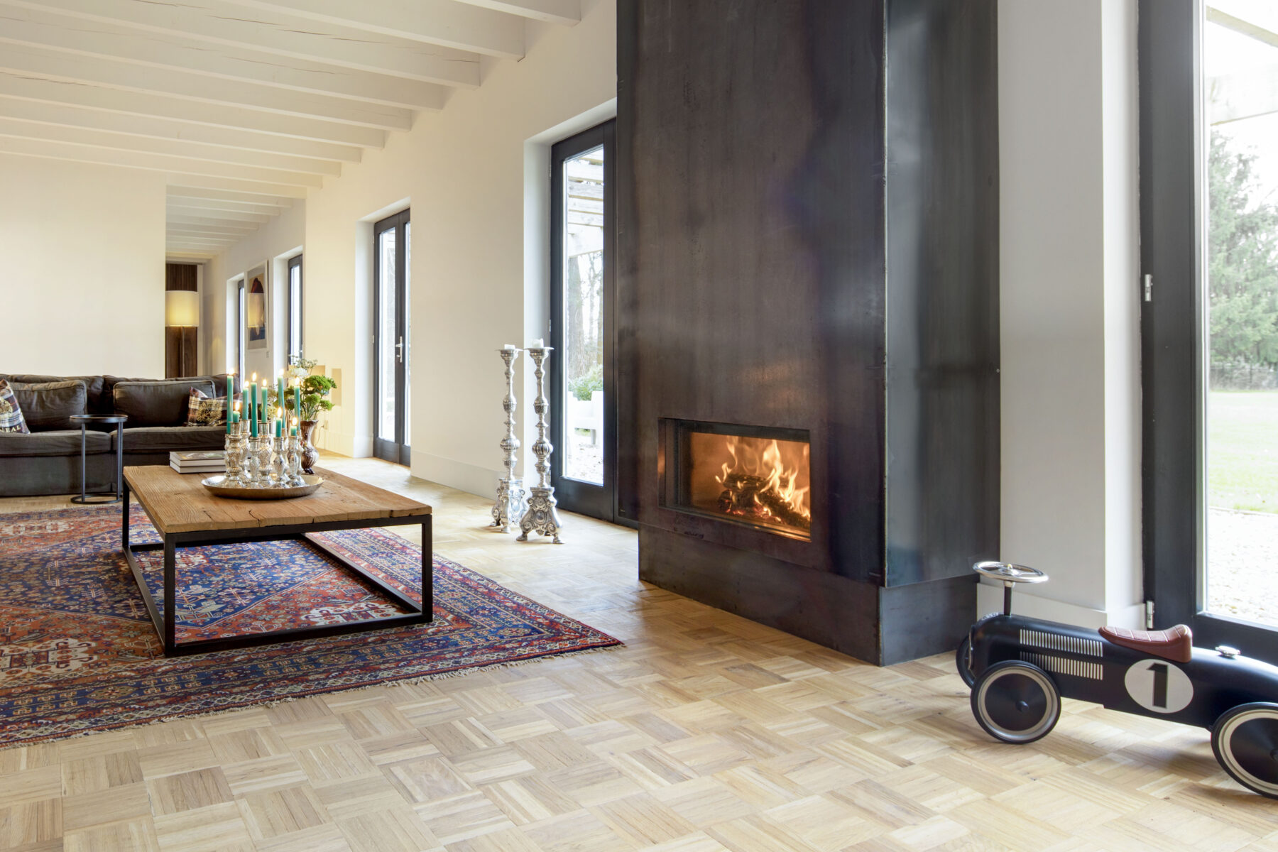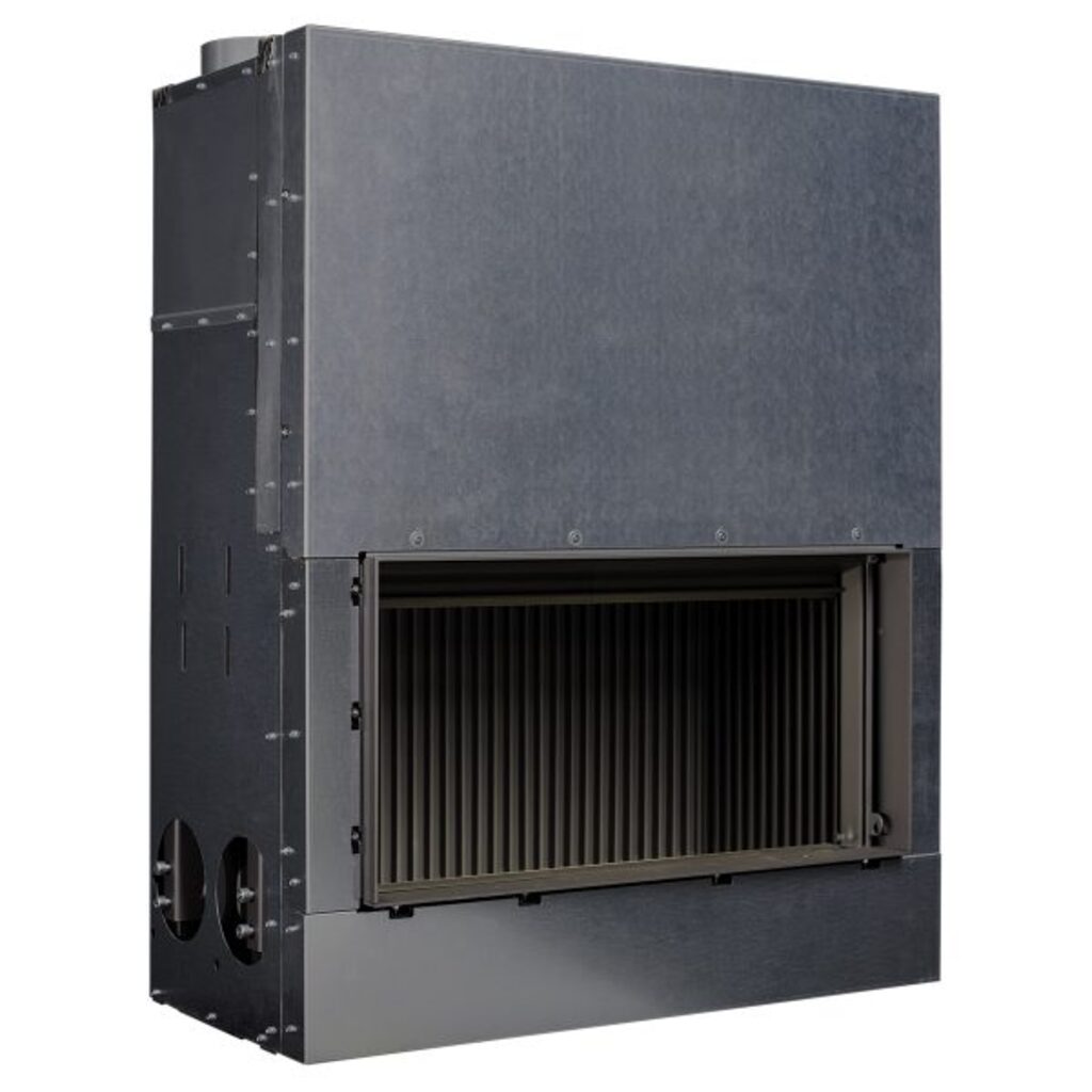 Focarul W70/33F face parte din gama premium și impresionează prin designul său modern și tehnologia avansată. Este realizat integral din oțel corten, cunoscut pentru rezistența și aspectul său distinct, iar exteriorul este prevăzut cu o carenă de convecție, care contribuie la eficiența termică. Placarea interioară standard este din Skamol, cu posibilitatea de a opta, contra cost, pentru variantele Lamella sau Design, în funcție de preferințe estetice și tehnice. Geamul focarului este proiectat fără ramă în partea inferioară, oferind o vizibilitate excelentă asupra focului, mai ales atunci când este utilizat cu geamul ridicat. Când focarul funcționează ca vatră deschisă, consumul de oxigen din încăpere rămâne zero, deoarece aerul de ardere este preluat din exterior și introdus în cameră prin grilele de ventilație. Acest lucru este posibil datorită carenei de convecție și clapetelor speciale, care direcționează aerul extern în carenă atunci când geamul este ridicat. În plus, focarul este dotat cu o valvă termică gravitațională inclusă, care reglează automat admisia de oxigen pe parcursul arderii, asigurând astfel un confort sporit și o ardere optimă.