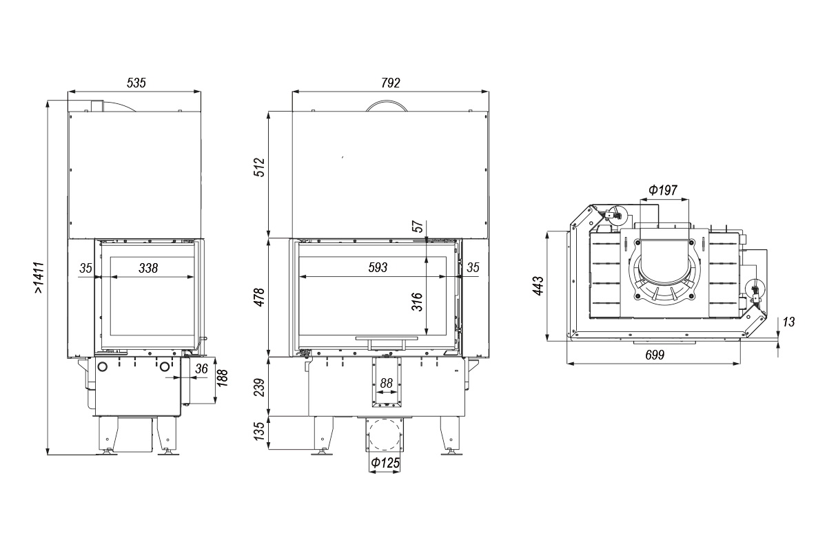 Evacuare focar = 200 mm